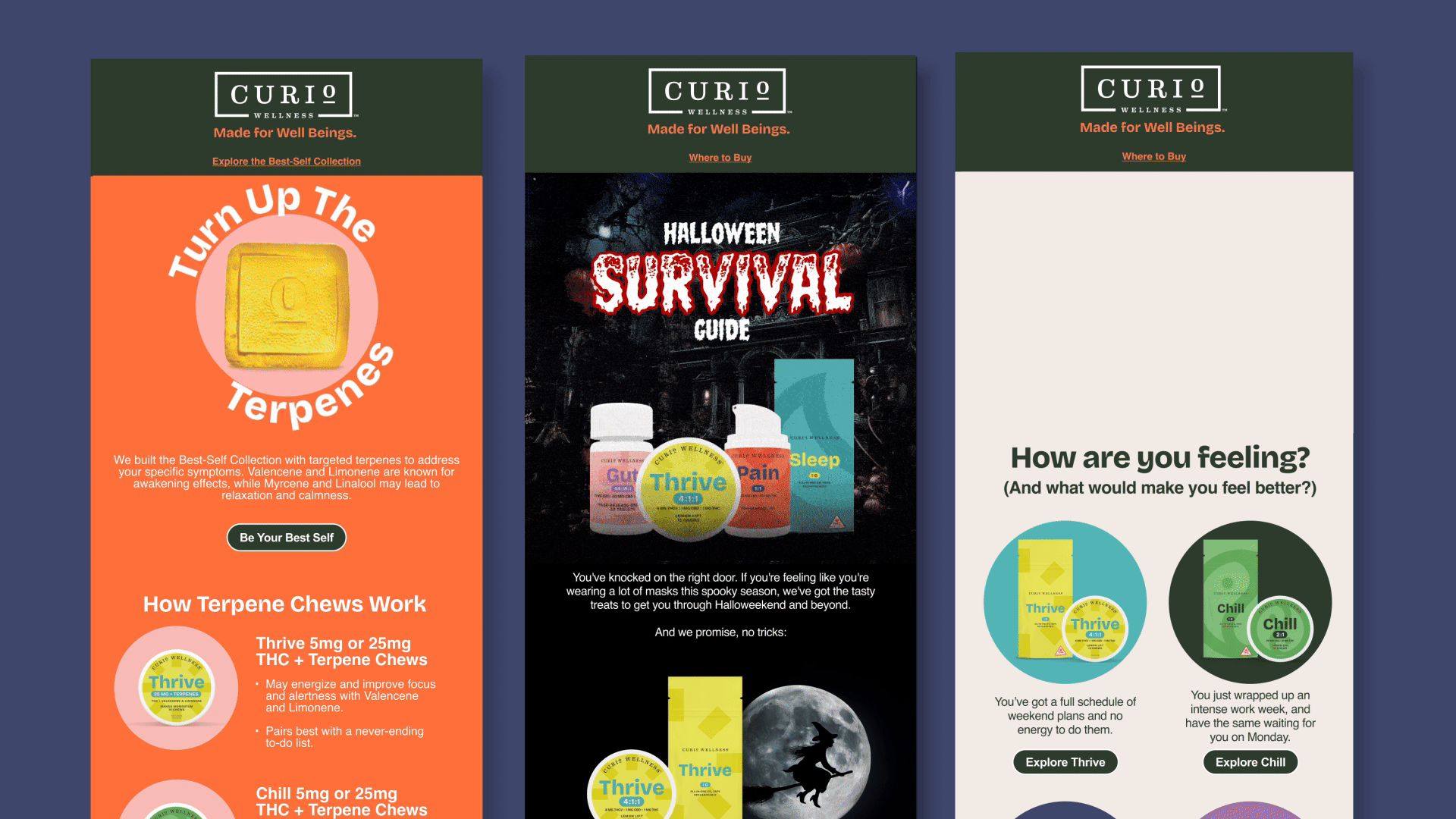The Curio Wellness campaign successfully highlighted the full range of cannabis product categories, making it easy for consumers to explore and understand their options. At the same time, it served as a strategic bridge between the current brand identity and the refreshed branding that was being introduced, ensuring a smooth and cohesive transition for customers.